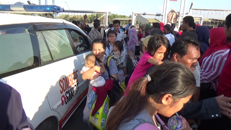 Saat tiba di Lanud Hasanuddin, mereka yang mengaku trauma tak kuasa menahan tangis saat bertemu dengan pihak keluarga yang sudah menunggu kepulangan mereka sejak kemarin. Beberapa di antara mereka, pun harus terpisah dengan keluarga lainnya karena tim evakuasi memprioritaskan perempuan dan anak-anak.